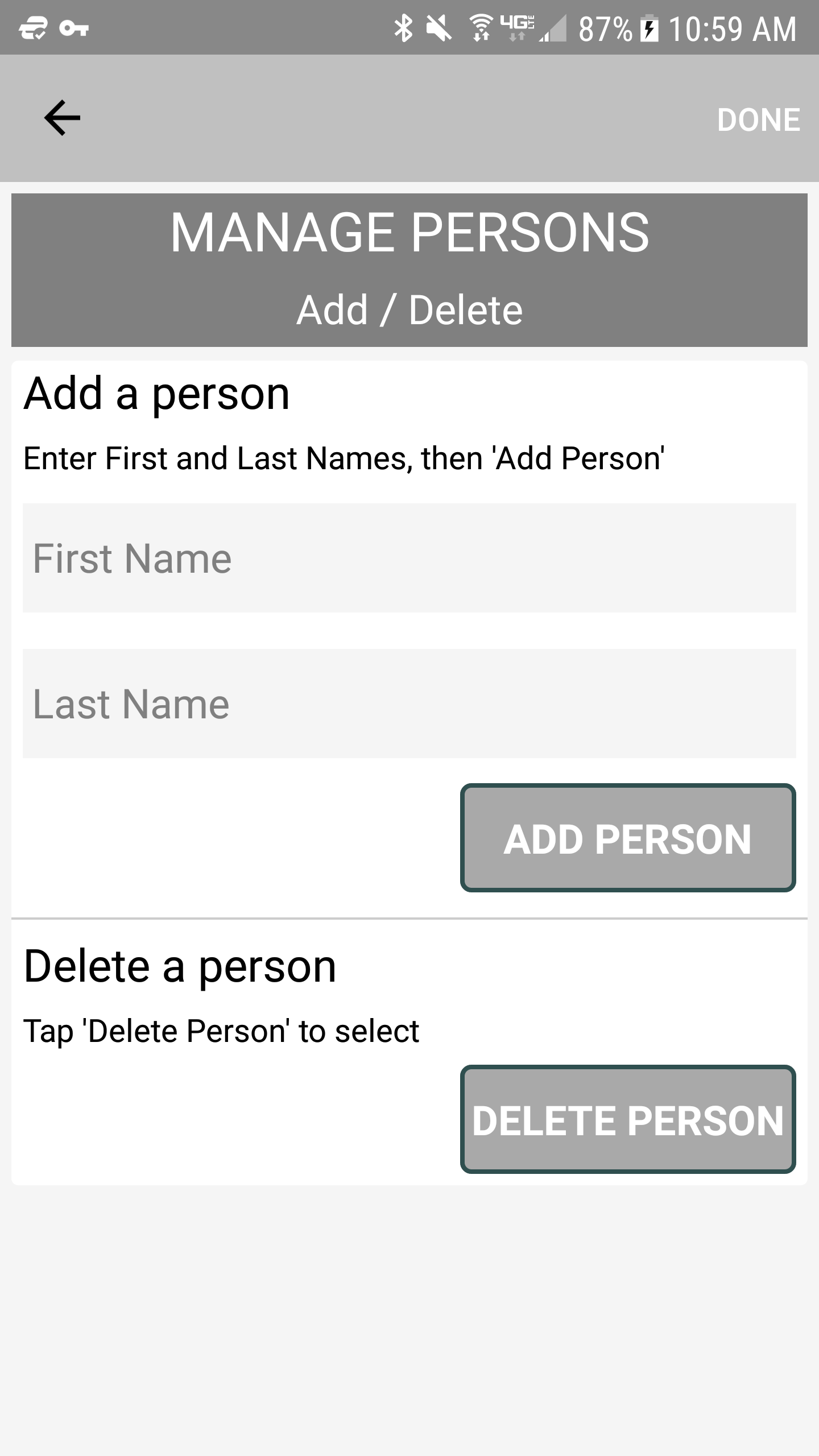 Tap Settings (3 dots) > Persons (Add/Delete)